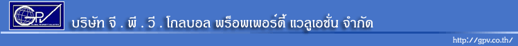 GPV Co.,Ltd. บริษัท จี.พี.วี.โกลบอลพร็อพเพอร์ตี้ แวลูเอชั่น จำกัด เลขที่ 14 -14/1 ซอยลาดพร้าว 106 ถนนลาดพร้าว แขวงวังทองหลาง เขตวังทองหลาง กรุงเทพฯ 10310 หมายเลขโทรศัพท์ 0-2538-2329 ( อัติโนมัติ 4 คู่สาย) หมายเลขโทรสาร 0-2931-9447